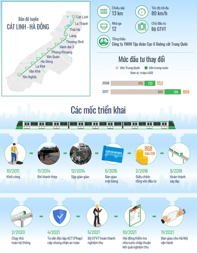 Ngày 6.11.2021 Bộ Giao thông vận tải và UBND Thành phố Hà Nội chính thức kết bàn giao dự án đường sắt Cát Linh – Hà Đông để đưa vào vận hành khai thác.